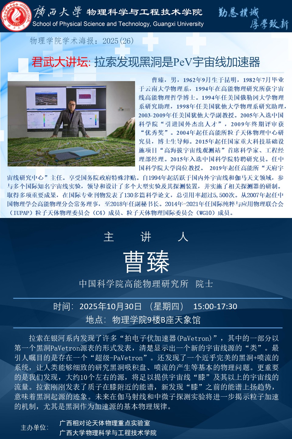 下一篇:2025年学术报告系列之25:Measuring cosmic rays using gamma-ray astronomy
